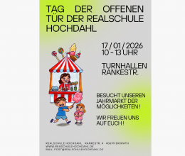 Am Samstag, den 17. Januar 2026, öffnen wir von 10:00 bis 13:00 Uhr die Türen unserer Realschule Hochdahl in der Sporthalle, Rankestraße 4–6 in Hochdahl.
