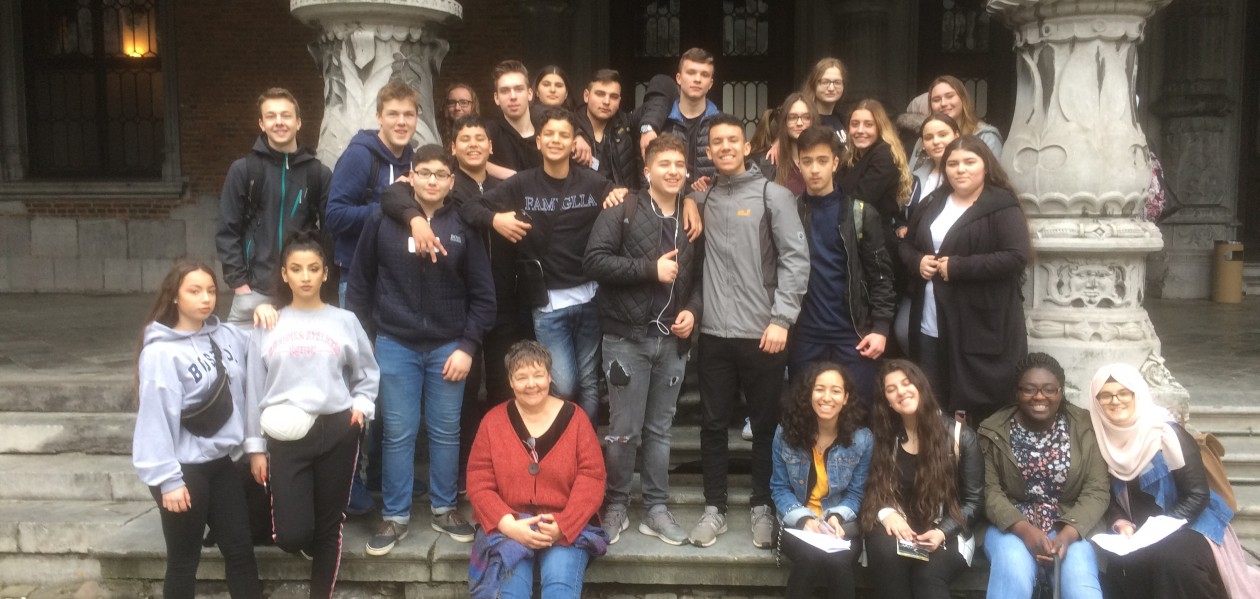 Am 12.04.2018 machten sich 35 Personen (alle Schülerinnen und Schüler der Französisch – Kurse 9 und 10 der RSH und die beiden Französisch – Lehrerinnen Frau Melchers und Frau Baum) auf nach Liège, ins französisch – sprachige Belgien. Nach einer 2 – stündigen Busfahrt kamen wir am oberen Ende des „Hausberges“, des Montagne de Bueren an, sehr froh, dass wir die 373 Stufen in die Innenstadt nur hinunter zu gehen hatten. Auch so zitterte schon das ein oder andere Knie, der Ausblick aber lohnte sich auf jeden Fall.