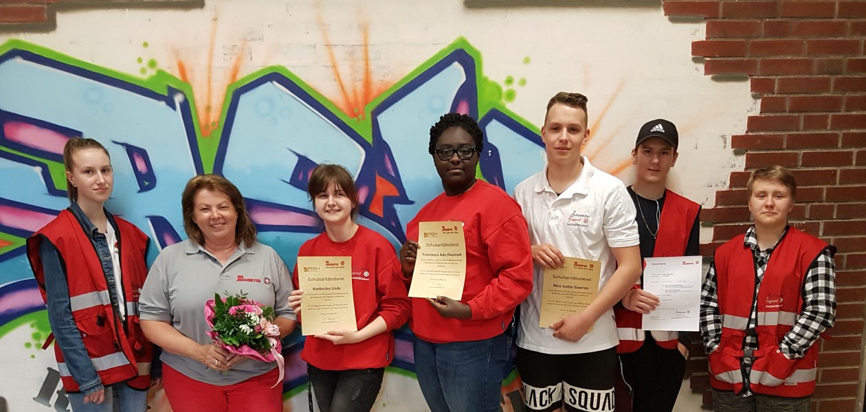 Die „alten Sanis“ (Nico Gawron, Francesca Adu Dwumah, Kimberley Linde, Lara Koch, Nicole Zaybel, Stephen Kunze) streben nun auf ihren Realschulabschluss zu. Ihr über drei Jahre geleistetes Engagement verdient sehr viel Anerkennung.